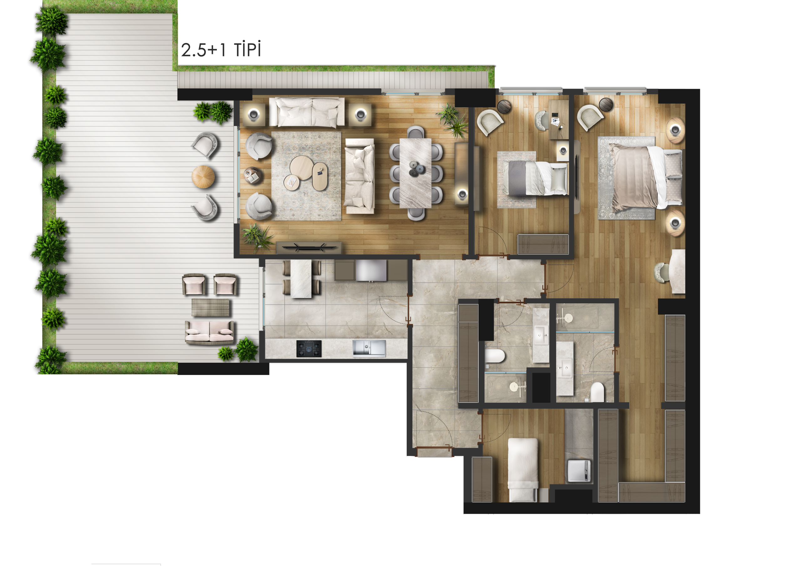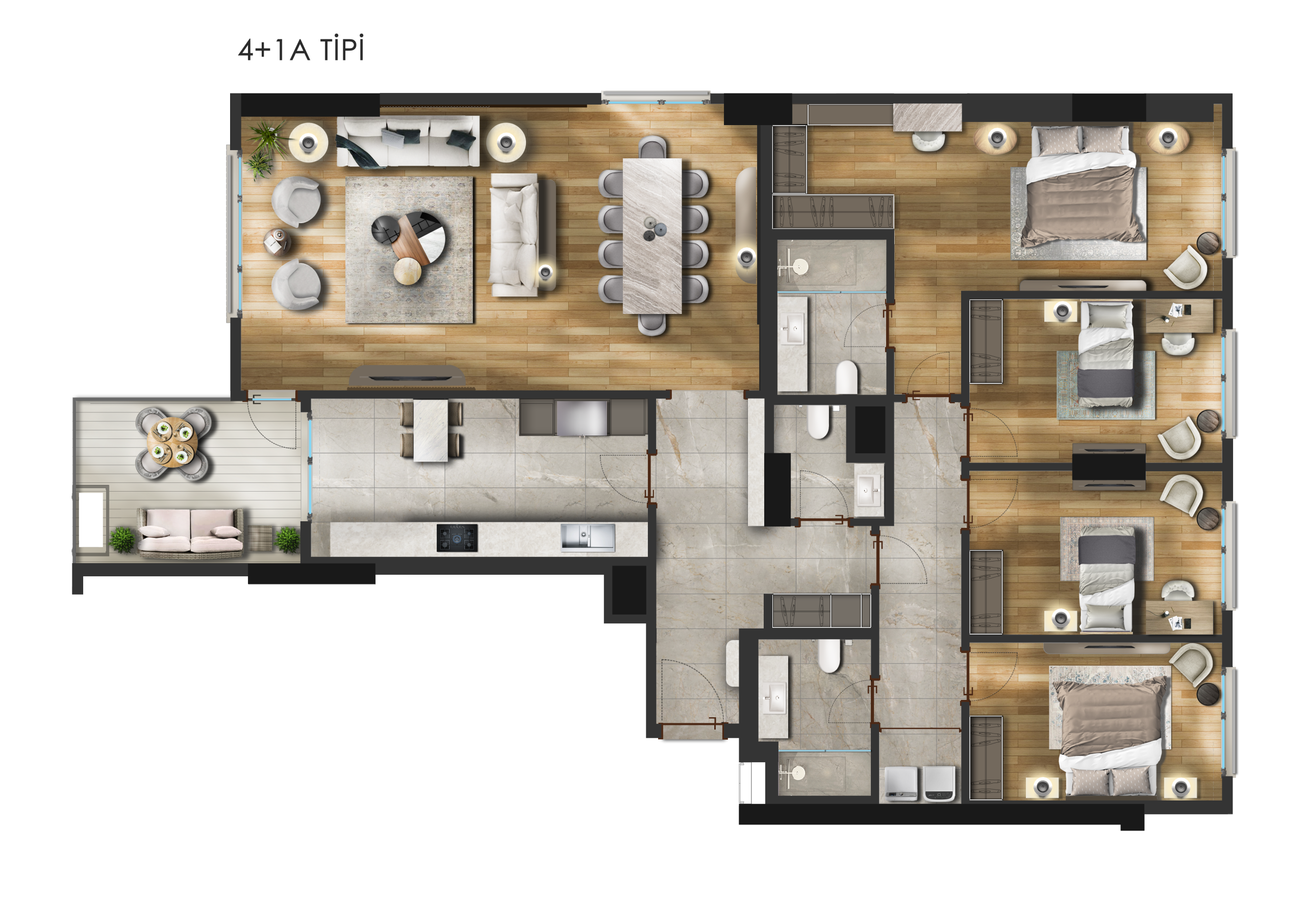 Apartment Types: 1+1-2+1-2,5+1-3+1-3,5+2-4+1-4,5+1-4,5+2-5,5+1-6,5+1 Options