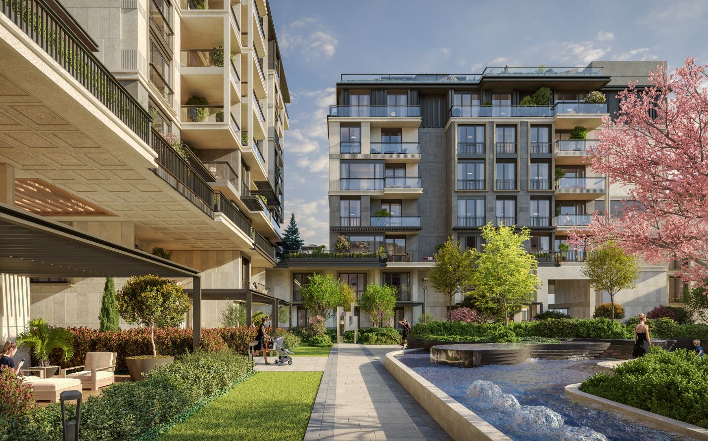 Exclusive Living Spaces: With wide gardens and terraces, it offers a life integrated with nature, while airy interiors redefine comfort.